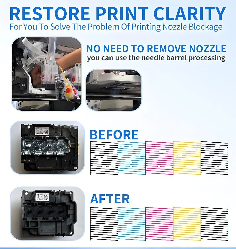 Protect your equipment investment and eliminate costly downtime with this professional-grade recovery solution. Engineered to dissolve stubborn ink buildup and dried pigments, this formula restores clogged nozzles to OEM-level precision, ensuring your DTF and water-based inkjet systems maintain a perfect, streak-free output.